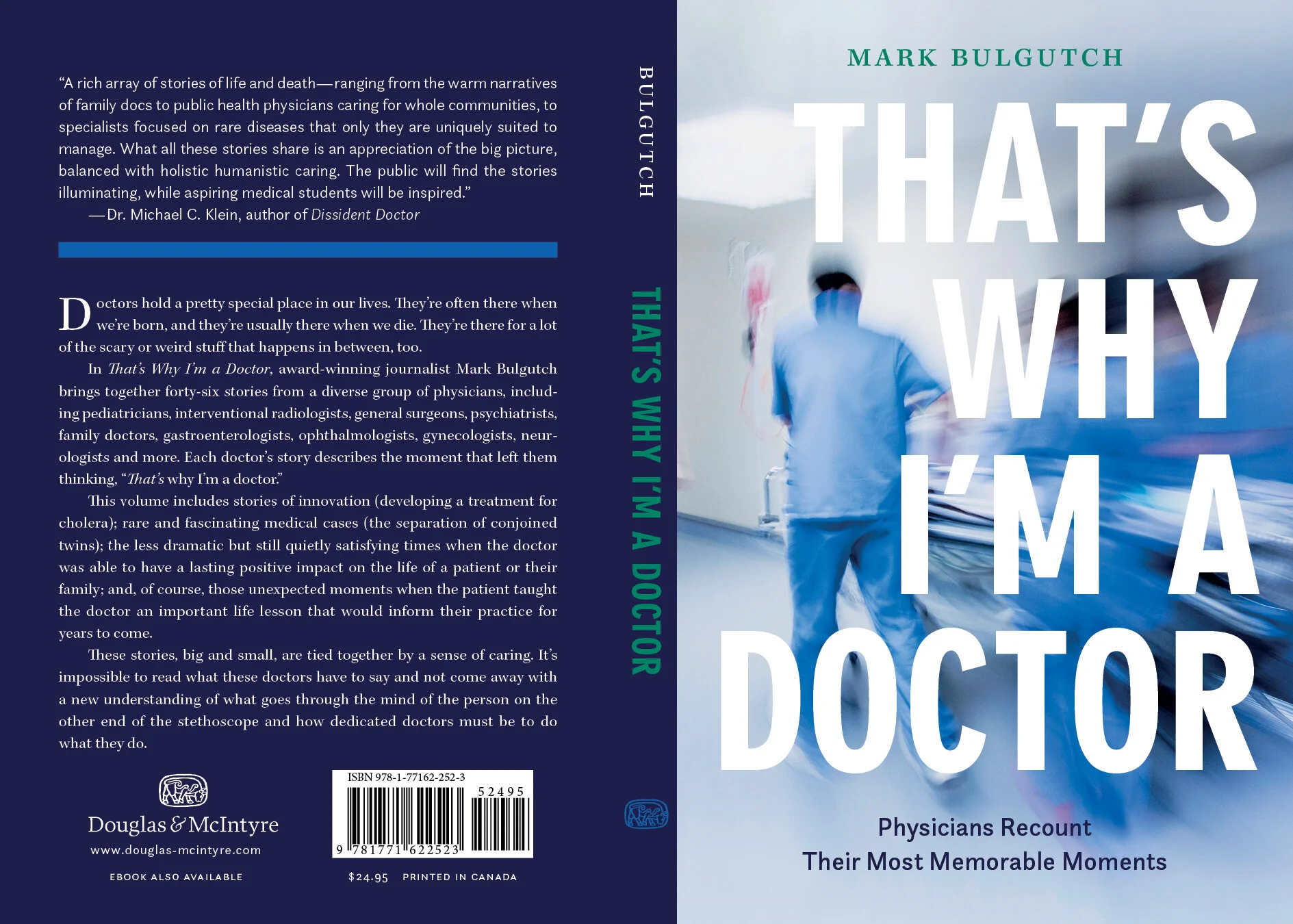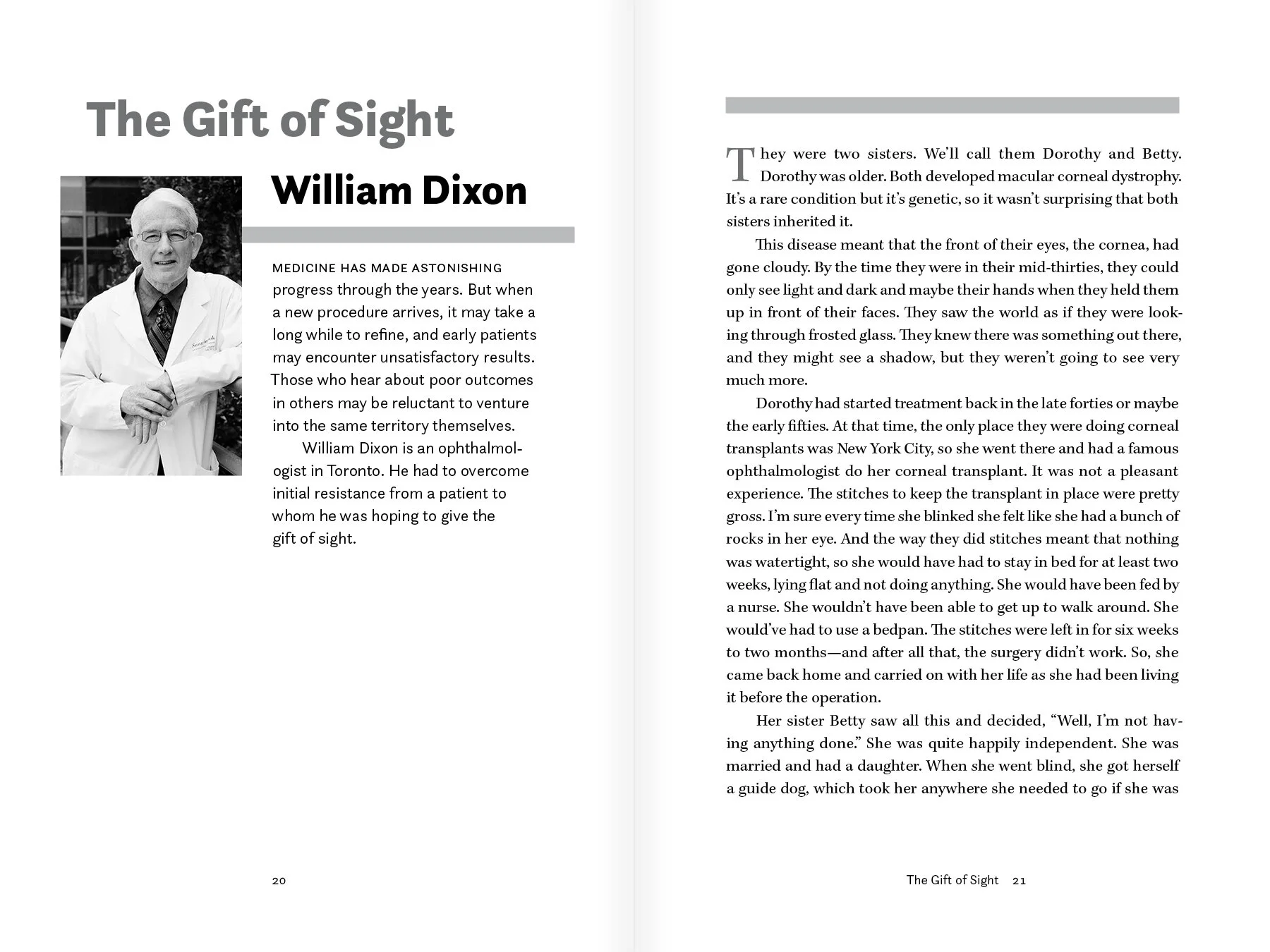 It’s always special to create the entire visual identity of a book—both cover and page layout. With this collection of doctors’ stories, I tried to create a design that demonstrates the important blend of technical scientific knowledge and empathic personality that makes great physicians.